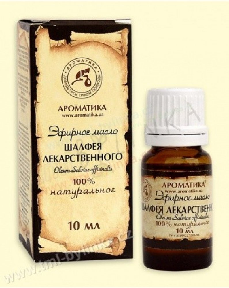 Použití: na aromaterapii a jako surovina na obohacení kosmetických prostředků.Aromaterapie: Při přepracování, emocionálně-fyzickém vyčerpání, depresi, hysterii, točení hlavy, omdlévání, migréně, neklidu a přerušovaném spánku. Respirační onemocnění, chřipka, bronchiální astma, angína. Odhání komáry a moskyty.Kosmetické prostředky: Obnova pružnosti a omlazení pokožky, akné, ekzémy, alergická dermatitida, psoriáza, posílení a podpora růstu vlasů, olysalá místa na hlavě, pleš, lupy, svědění, kousnutí hmyzem.Způsob použití: 1)Aromalampa: 3-5 kapek na 15 m22)Inhalace: 1-2 kapky na 1-2 litry teplé vody3)Aroma koupel: 3-5 kapek na vanu4)Sauna: 3-5 kapek na 500 ml vody5)Masáž: 3-5 kapek na 10 ml olejového základu6)Kosmetické přípravky: 2-5 kapek na 10 g základu (krém, šampón, gel, tekuté mýdlo, atd.)Ingredients: Salvia Officinalis OilSkladování: Skladujte v dobře uzavřené nádobě, mimo dosah dětí, při teplotě max. do +25oC. Zabraňte kontaktu s přímými slunečními paprsky.Upozornění: Pouze na vnější použití. Nepřekračujte doporučené dávkování. Při zasažení očí, opláchnout pod proudem tekoucí vody. Neužívat při nesnášenlivosti na složky přípravku. Země původu: UkrajinaPůvod suroviny: Chorvatsko/ŠpanělskoBalení: 10 ml