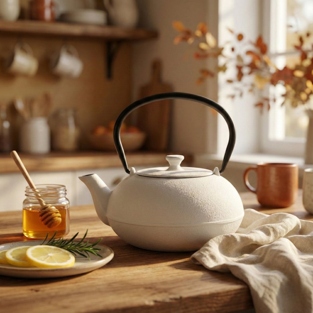 Aromeio Litinová čajová konvice s filtrem NOMI 800 ml bílá