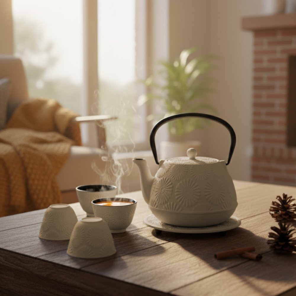 Elegantní čajový set AROMELIO s šálky a podstavcem KOGA umožňuje servírovat čaj pro více osob s dlouhotrvajícím udržením teploty nálevu. Litinové tělo podporuje rovnoměrné rozložení tepla a stabilní teplotu během podávání. Vnitřní smaltovaný povrch chrání materiál a zachovává přirozenou chuť připravovaného čaje. Součástí setu jsou 4 šálky, kovové sítko na sypaný čaj a podstavec pro bezpečné odložení konvice. Šedé provedení s jemným reliéfním vzorem zapadá do interiérů ve stylu japandi i moderní domácnosti. Klíčové vlastnosti čajového setu AROMELIO KOGA, šedá, 1200 mlČajový set AROMELIO KOGA obsahuje litinovou konvici o objemu 1200 ml s pokličkouJe vyroben z litiny s vnitřním smaltovaným povrchemZahrnuje 4 šálky a podstavec na čajovou konvici ve sladěném šedém designu s jemným reliéfem v japonském styluČajové šálky nabízejí objem 120 mlČajová konvice je vybavena kovovým sítkem na sypaný čajObsah balení:1× litinová konvice1× poklička1× podstavec1× kovové sítko4× šálek