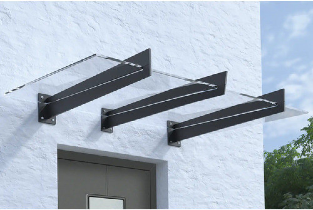 Předstříška Lyon s pultovým tvarem na vás čeká s průhlednou střešní deskou. Ta se upevňuje na antracitově šedé nástěnné držáky, které jsou součástí setu. Pokud bude padat sníh, vydrží model Lyon zatížení až 0,75 kN/m². A pokud by se na stříšce nahromadil sníh, jednoduše a lehce ho odklidíte.