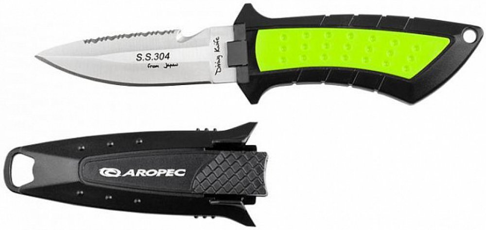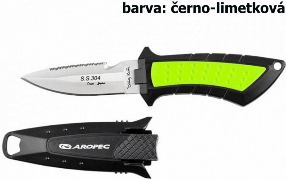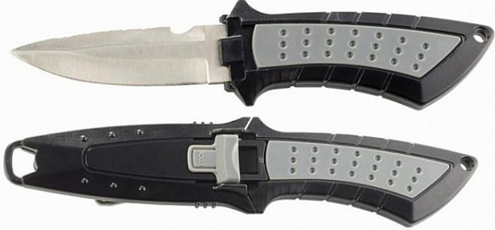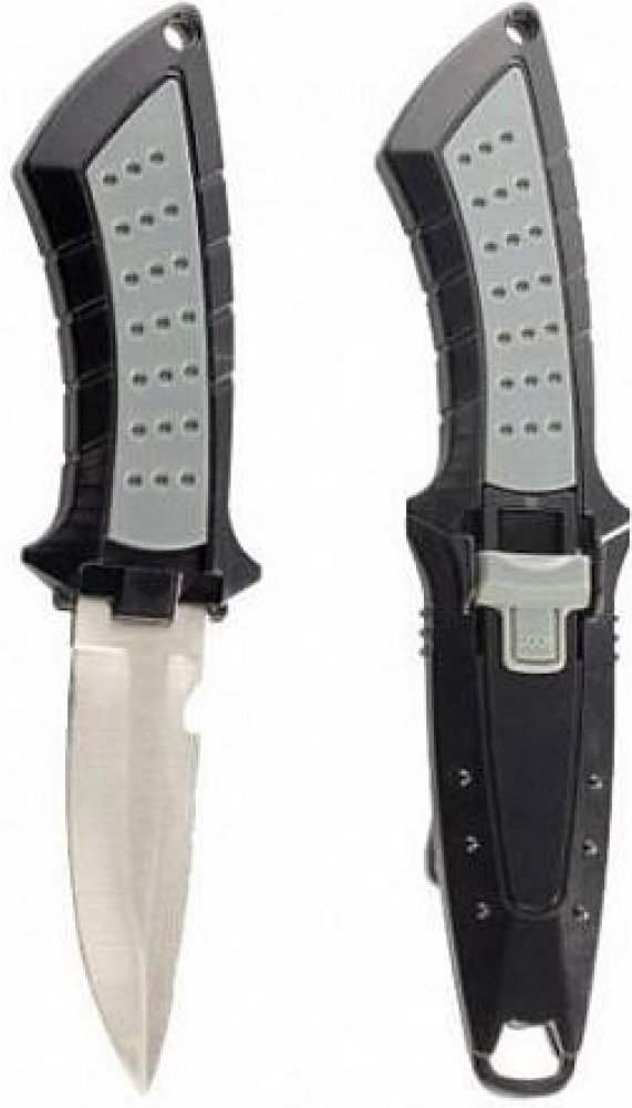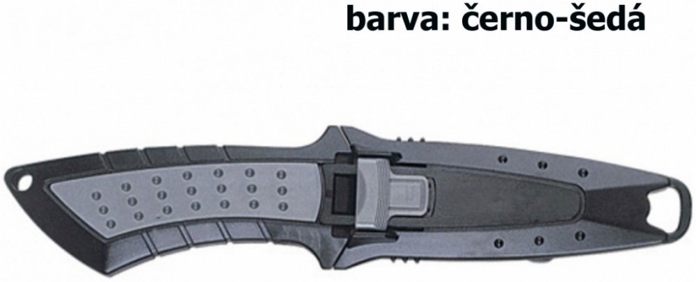 Potápěčský nůž vhodný zejména k umístění na vodáckou vestu, žaket či na hadici žaketu.