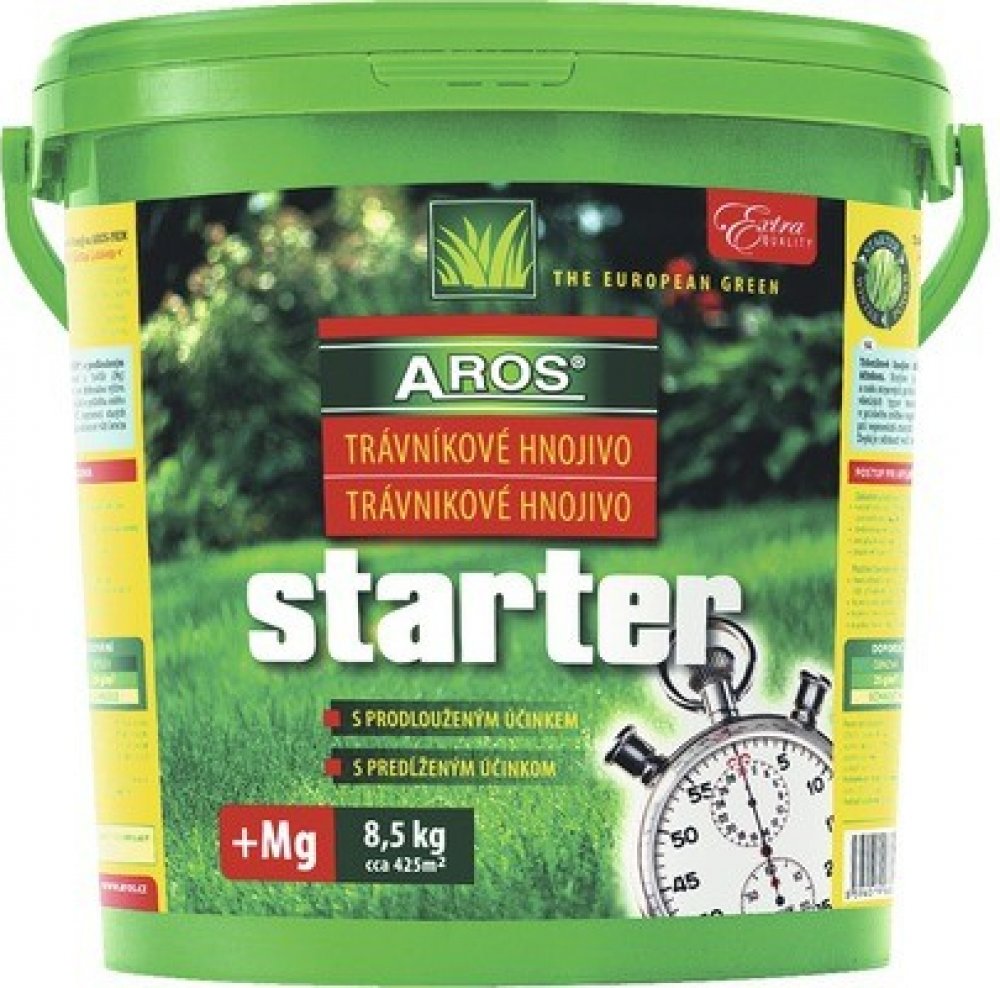 Trávníkové hnojivo AROS STARTER® s prodlouženým účinkem. Hnojivo je obohacené o hořčík (MgO) a řadu stopových prvků. Je určeno pro dokonalou výživu všech typů trávníků s možností použití v průběhu celého vegetačního období, především při regeneraci starých a zakládání nových trávníků. Zvyšuje odolnost vůči letním a zimním stresům. Složení hnojiva: N (12 %), P (11 %), K (18 %) + MgO (3 %)