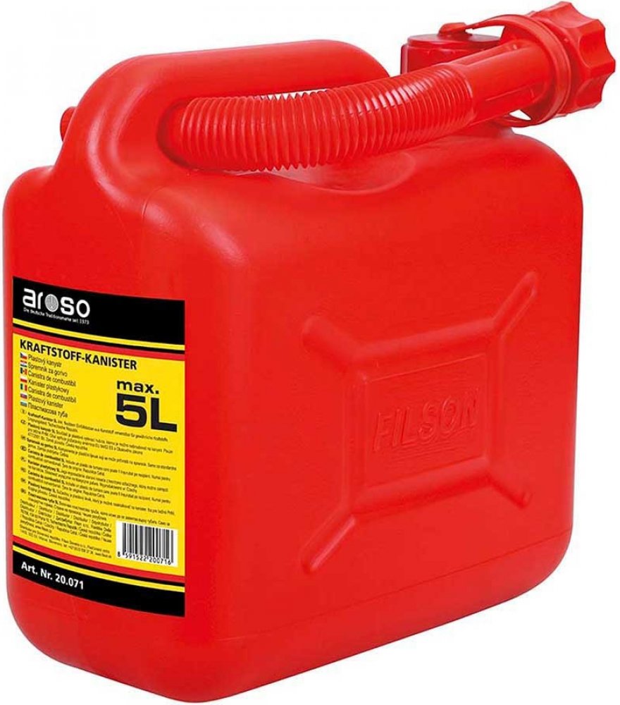 Kanystr na PHM 5l červený AROSOPlastové kanystry o objemu 5l jsou ideálním řešením pro bezpečný transport a skladování běžných pohonných hmot. Jsou vybaveny otočným uzávěrem a speciální výpustnou trubicí, což zajišťuje snadné a přesné nalévání tekutin. Tyto kanystry jsou certifikovány a opatřeny UN značením, Směrnice EU 94/62 ES a obalového zákona 447/20001 SB, což potvrzuje jejich vhodnost pro přepravu a skladování běžných pohonných hmot.Jeho vnější rozměry činí 255mm na délku, 125mm na šířku a 252mm na výšku. Díky těmto kompaktním rozměrům je kanystr snadno přenosný a skladovatelný. Průměr hrdla je 31mm, což umožňuje pohodlné plnění i vypouštění. Kanystr je také vybaven nalévací trubkou pro ještě větší komfort při použití.