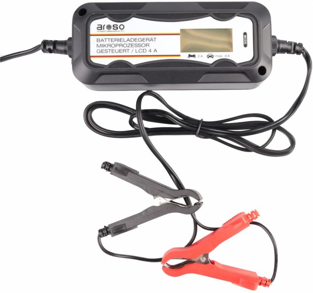 Nabíječka od značky Aroso je vhodná pro auta, motocykly a běžné kyselino-olověné a gelové akumulátory. Obsahuje Mikroprocesor, který optimalizuje proces nabíjení a přináší 5 nabíjecích fází. 1. fáze Diagnosis & Recovery testuje kvalitu a stav nabití akumulátoru, poté probíhá nabíjení dle napětí. 2. fáze Bulk nabíjí do určité doby maximálním proudem a následně se nabíječka přepne na nižší proud. 3 fáze Absorption proud sníží na 0,8 A pro eliminaci rizik úniku plynů z akumulátoru. Ve 4 fázi Trickle Charge je udržován již v plně nabitém stavu proudem 100 mA. 5 fáze Maintenance Charge monitoruje napětí a udržuje impulsy 0,8 A do maximálního napětí 14,4 V. Nabíjecí proces je tak mnohem přesnější a za stejnou dobu zajišťuje mnohem kvalitnější nabití. Nabíječka poskytuje ochranu proti zkratu, jiskření, přehřívání a otáčení polarity a zároveň má stupeň krytí IP65 vůči vodě. Maximální nabíjecí proud činí 4 A u akumulátorů s vyšší kapacitou, 2 A u akumulátorů s nižší kapacitou.