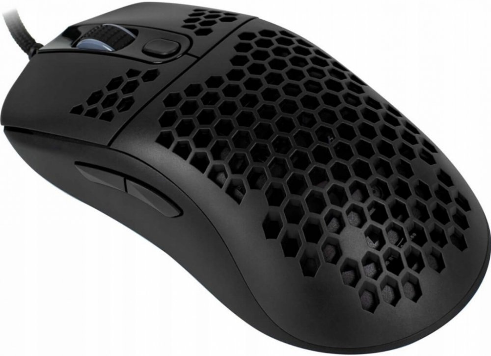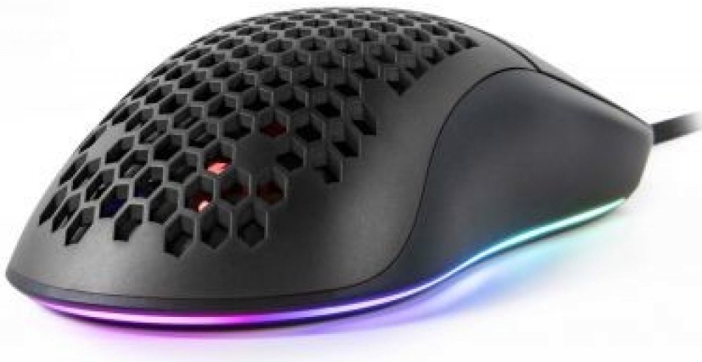 Ultralehká herní myš disponující 7 programovatelnými tlačítky a vysoce přesným optickým senzorem Pixart 3389 s rozlišením až 16000 DPI. Kryt v designu plástve snižuje celkovou hmotnost, zlepšuje odvod tepla, a tím zajistí i pevnější uchopení myši. Herní design poté doplňuje nastavitelné RGB podsvícení. Kvalitní spínače Omron vydrží více než 20 milionů kliknutí. Připojení je realizováno skrze opletený USB kabel.