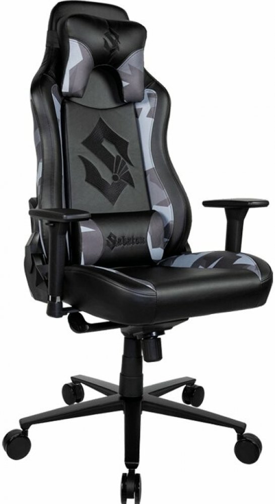 Herní židle s robustní kovovou konstrukcí, designem inspirovaným kapelou Sabaton a maximálním pohodlím pro dlouhé herní sezení.