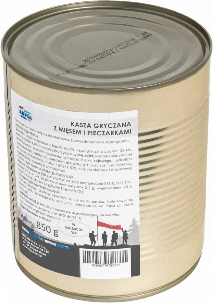 Pohanková kaše s masem a žampiony. Vojenská konzerva.