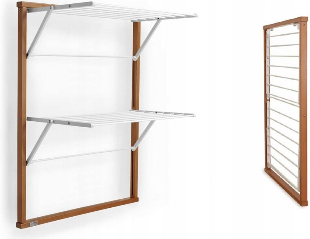 Pevná konstrukce z masivního bukového dřeva dodává sušičce elegantní vzhled, který dokonale ladí s různými styly interiérů. Hliníkové dráty o celkové délce 9 metrů poskytují stabilní oporu pro praní. Dvě nezávislé úrovně umožňují volné rozmístění oblečení podle aktuálních potřeb. Díky snadnému systému otevírání a skládání je používání sušičky mimořádně pohodlné.