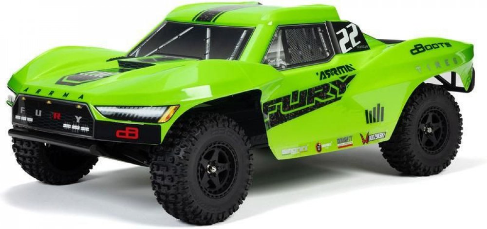 RC model Arrma Fury Mega 550 1:10 RTR Basic je cenově dostupné auto na dálkové ovládání typu Short Course s náhonem 2WD, nezávislým zavěšením, olejovými tlumiči, proporcionálním řízením a stejnosměrným motorem. RC souprava SLT 2.4 GHz.