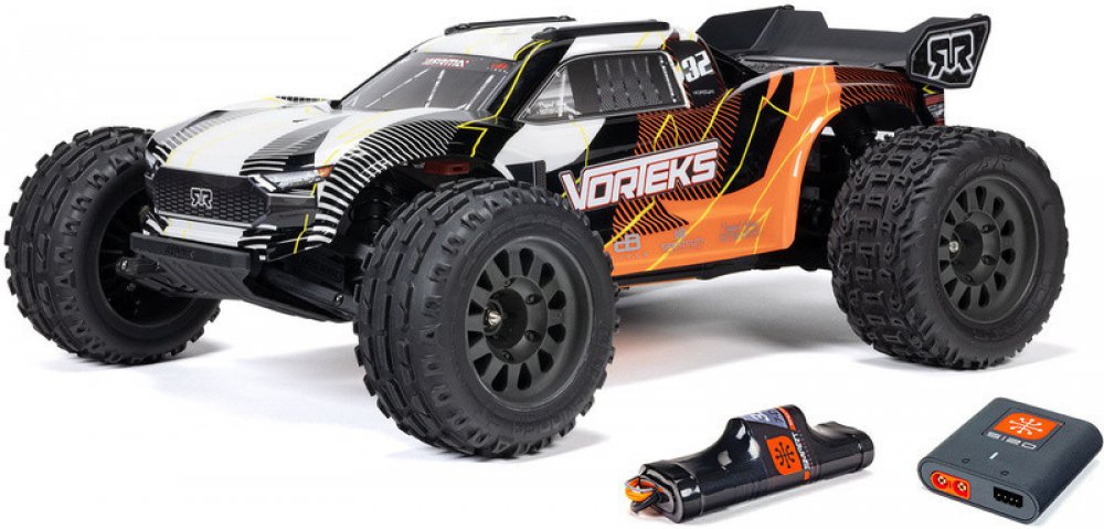 RC model auta Arrma Vorteks Mega 550 1:10 RTR typu Truggy s náhonem 2WD, nezávislým zavěšením, olejovými tlumiči, proporcionálním řízením a stejnosměrným motorem. Jako jeden z cenově nejdostupnějších RC aut v měřítku 1:10 zaujme především začínající řidiče a děti. Díky plnohodnotné výbavě je však vhodný i pro zkušenější jezdce. Model zachovává všechny přednosti modelů značky Arrma jako je odolnost, vysoký výkon a podpora dílů.