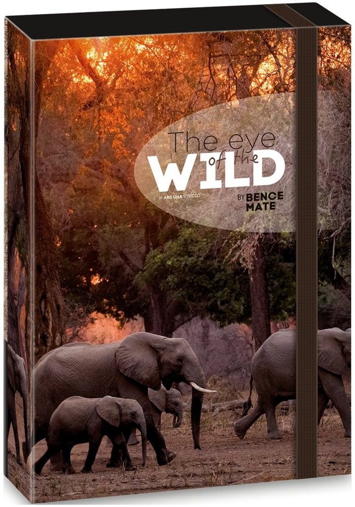 Box na sešity z kolekce The eye of the Wild od výrobce Ars Una pro uložení dokumentů, výkresů a sešitů ve formátu A4.Vyrobeno z vysoce odolného, tvrdého lamino kartonu tloušťky 7 mm, který chrání umístěné listiny před poškozením.Uzavírání boxu je pomocí širší pružné gumičky, která důkladně udrží složku sevřenou.Krásný celoplošný tisk. Ideální jako část školní výbavy.Rozměr: 23,5 x 4,8 x 33 cm