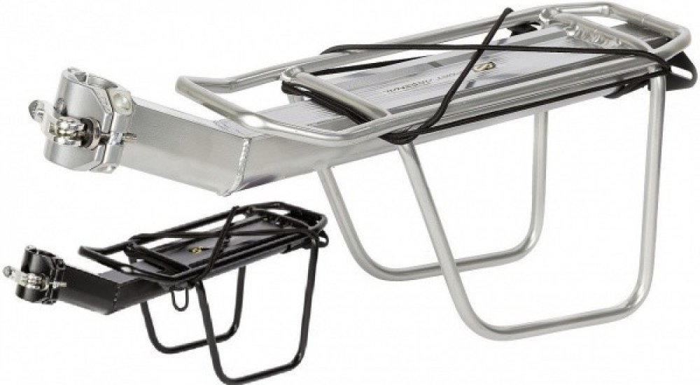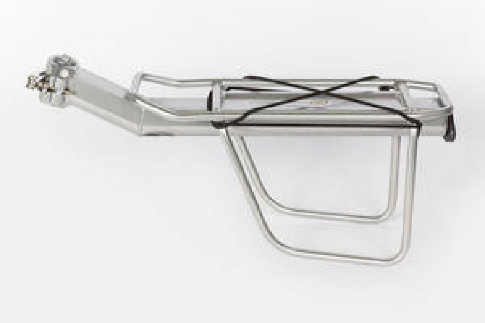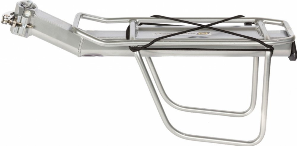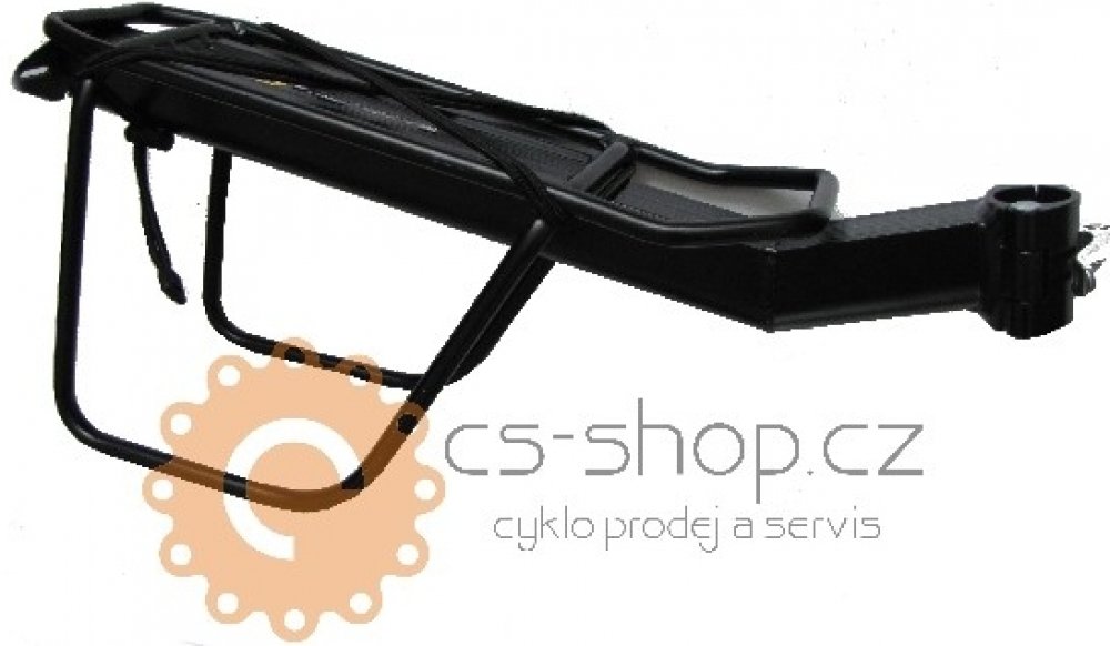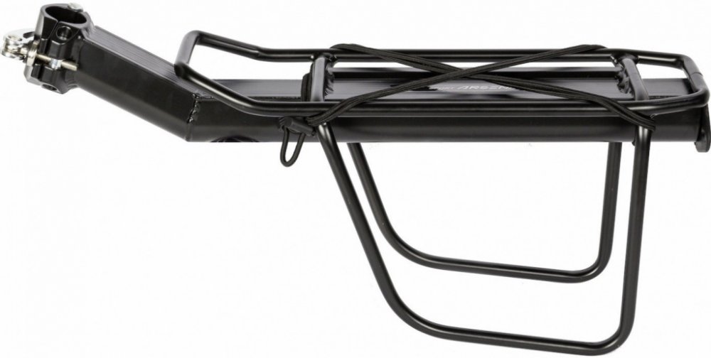 Zadní univerzální nosič na sedlovku pro převoz lehčích nákladů, je ideální v případech, kdy nelze připevnit standardní nosiče (např. celoodpružená kola, kola s atypickou zadní stavbou nebo modely bez návarků a závitů pro zadní nosič).