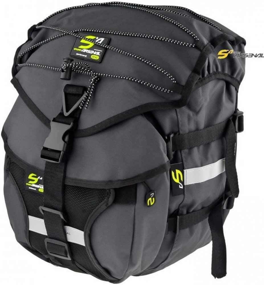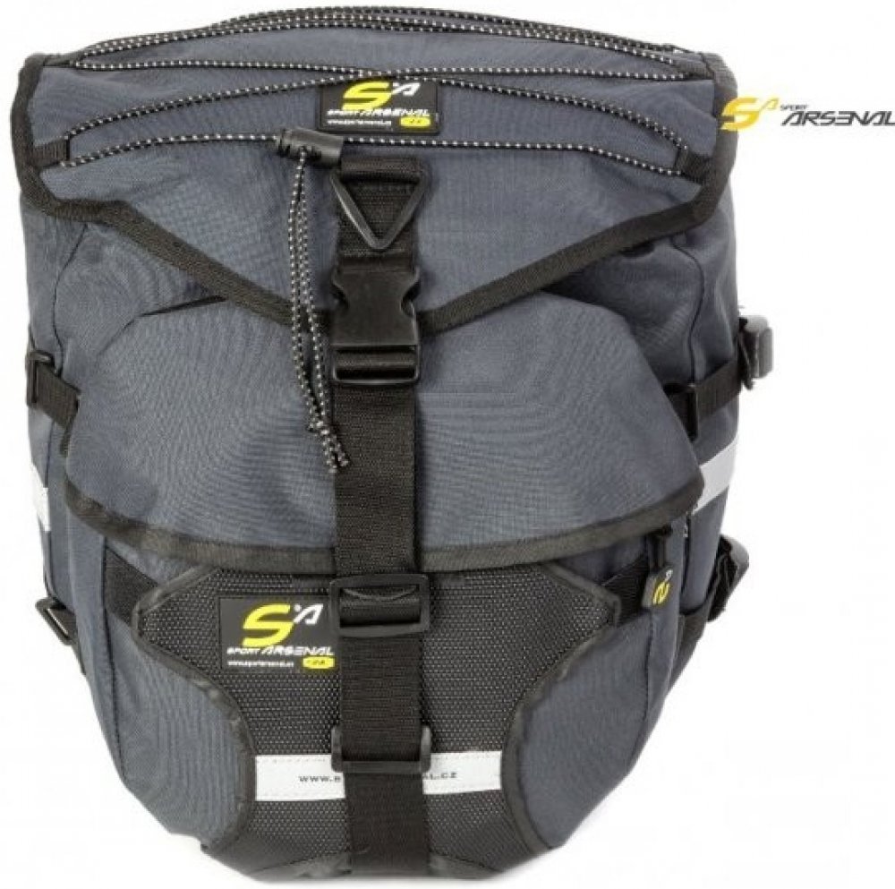 Velkoobjemová brašna s praktickým kapsovým členěním je skvělou volbou pro cesty na těžko. Háky s nastavitelnou roztečí pro snadné uchycení a variabilní objem, to jsou přednosti této skvělé brašny. Hlavní, velká kapsa brašny se uzavírá stahovákem. Na víku brašny naleznete vnitřní kapsu pro uložení drobností, které je potřeba mít neustále po ruce. Praktický stahovací gumicuk pro upevnění dalšího nák...