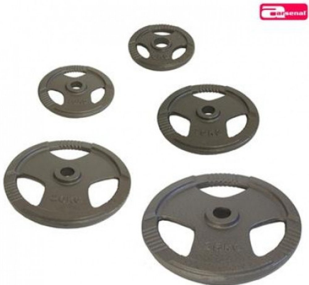 Pogumovaný kotouč od společnosti ARSENAL váží 10 kg. Středový otvor o průměru 50 mm je vhodný pro olympijské osy i pro trny na závaží pro posilovací stroje na kotouče. Kotouč je vybaven čtyřmi oválnými otvory pro úchop.pogumovaný s průměrem 50 mm s koncovým úchytem.