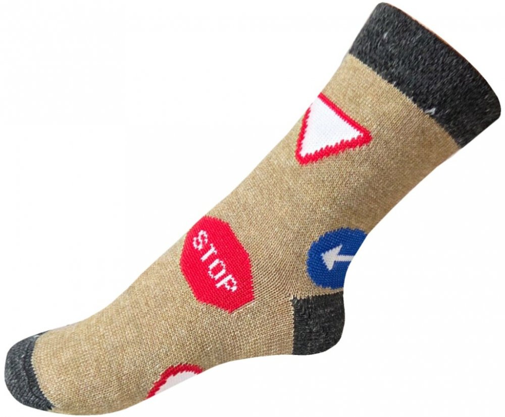 Dětské ponožky s motivem dopravních značek– pohodlí, které zvládne každé dobrodružství!Dopřejte dětem teplo a pohodlí, které vydrží i ta největší dobrodružství. Tyto bavlněné ponožky s veselým motivem dopravních značek jsou nejen stylové, ale i příjemné na nošení po celý den. Díky zpevněné patě skvěle drží tvar, jsou odolné a nabídnou komfort při každém kroku – ve školce, doma i na hřišti. Proč si vybrat právě tyto dětské ponožky? Mírně zpevněná pata – pro delší životnost a lepší oporu nohy Měkká bavlna – příjemná na dotek, ideální pro citlivou dětskou pokožku Elastický lem – pohodlně obepíná nohu bez nepříjemného škrcení Veselý design – potěší malé milovníky silnic Odolnost a pružnost – díky příměsi polyamidu a elastanu drží tvar i po praní Komu jsou ponožky určeny? Pro děti, které milují pohodlí a hravé motivy Ideální na běžné nošení do školky, školy i na doma Skvělé i jako dárek – potěší každého malého řidiče Skvělá volba pro rodiče, kteří hledají kvalitní český výrobek z bavlny Složení materiálu:80 % bavlna, 17 % polyamid, 3 % elastan Dopřejte dětem ponožky, které jsou stejně odolné jako jejich fantazie. Objednejte jim bavlněné ponožky s dopravními značkami ještě dnes a nechte jejich nohy objevovat svět v pohodlí a stylu!