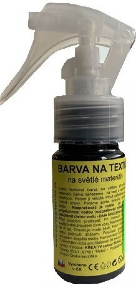 Vodou ředitelná barva na většinu přírodních textilních světlých materiálů. Barvy ve spreji můžeme použít k dekorování textilu přes šablony či samostatně nebo vytvářet batikovací vzor. Barva se vyrábí v konzistenci, která umožňuje přímo kreslit na většinu textilních materiál. Pokud by se vám barva zdála příliš hustá je ji možné opatrné naředit vodou, nebo ředidlem Art e Miss. Čím je barva řidší, tí...