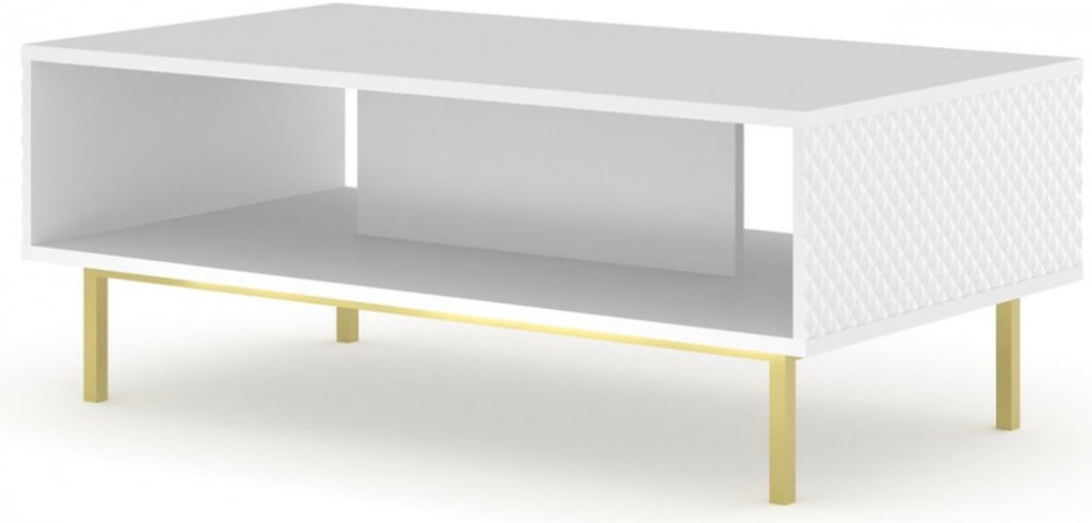 Konferenční stolek RAVENNA C 90 | bílá lesklá Se stylovým konferenčním stolkem RAVENNA C 90 si vytvoříte elegantní a moderní obývací pokoj. Konferenční stolek RAVENNA C má nadčasový detail frezovaných částí, který je vyroben s důrazem na detaily a kvalitu . Možnost výběru máte ze zlaté a černé barevné kolekce nohou .