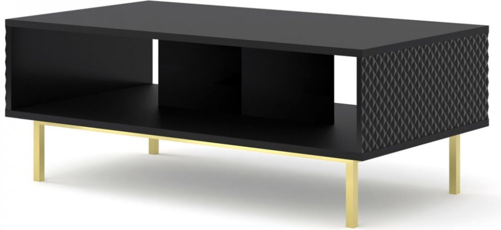 Konferenční stolek RAVENNA C 90 | černá lesklá So stylovým konferenčním stolkem RAVENNA C 90 si vytvoříte elegantní a moderní obývací pokoj. Konferenční stolek RAVENNA C má nadčasový detail frezovaných částí, který je vyroben s důrazem na detaily a kvalitu . Možnost výběru máte ze zlaté a černé barevné kolekce nohou .