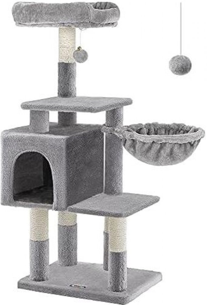 5 sloupků kočičího škrabadla je zabaleno v sisalu, takže je váš malý furball může používat k broušení drápků; ale některá protahovací cvičení jsou také možná