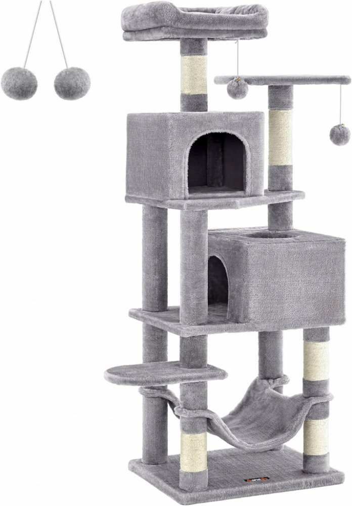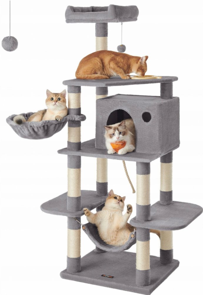 Nechcete, aby si vaše kočička škrábala drápky o nábytek? Potom byste měli zvážit pořízení Artenat Kočičí strom Jimmy, 164 cm, šedá. Škrabadlo Artenat je pro kočku důležitým místem, v opačném případě totiž bere útokem nábytek, zejména křesla a pohovku. Odpočívadlo se může stát jejím oblíbeným místem na spaní. Prolézačka ji přijde vhod, když bude chtít zlobit. Umístění je možné de facto kamkoliv, není jej totiž potřeba jakkoliv zabezpečovat. Součástí škrabadla je škrabací sloup, budka, hračka a pelíšek. Na výrobu byl použit materiál kov, plyš a mdf. Plyšový materiál zajistí dokonalý odpočinek. Základní přednosti škrabadla pro kočky Artenat Škrabadlo pro kočky Artenat se hodí do každé domácnosti, kde žije kočka Nemusít ho přidělávat, protože stojí volně Škrabadlo obsahuje: škrabací sloup, budka, hračka a pelíšek Materiálem je kov, plyš a mdf Rozměry škrabadla dosahují 164 × 90 × 50 cm
