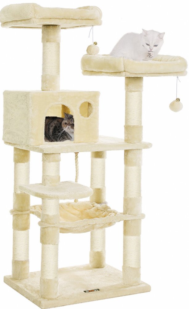 Kočičí strom a škrabadlo v jednom vyrobené v béžové barvě potěší nejen kočičku, ale pak i pro jejího spokojeného páníčka.