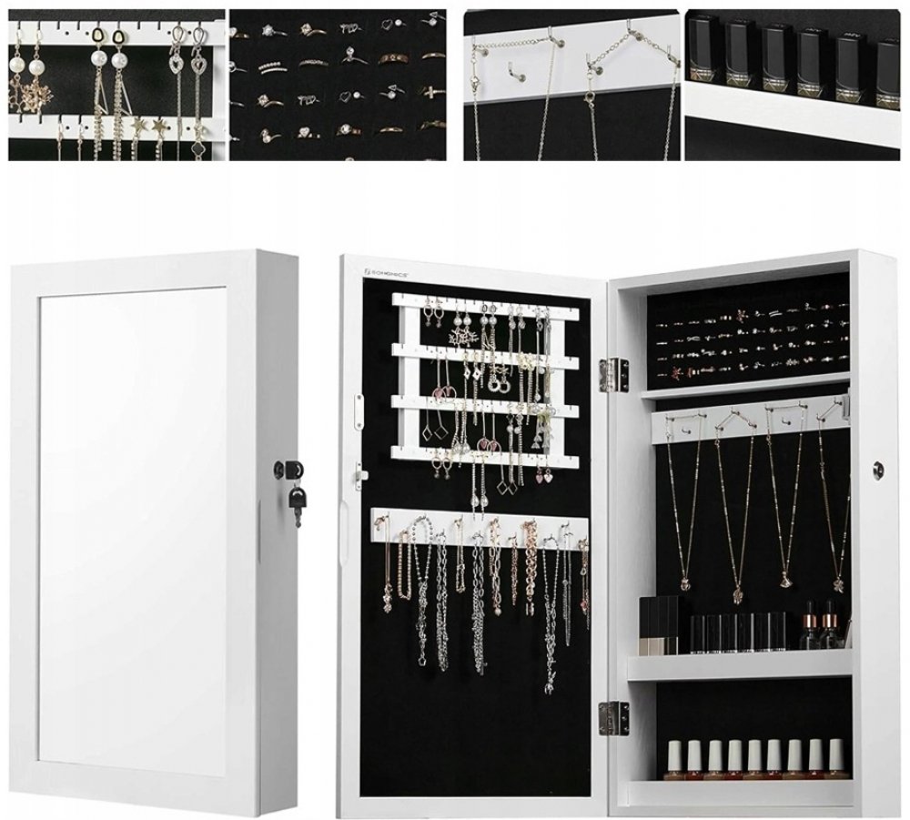 ZRCADLA? ŠATNÍK? OBA! Už žádné pobíhání z místnosti do místnosti a hledání zrcadla! S touto šperkovnicí 2 v 1 budete mít veškeré příslušenství na dosah. Zrcadlové dveře vám ukáží, který kousek se dnes dokonale hodí