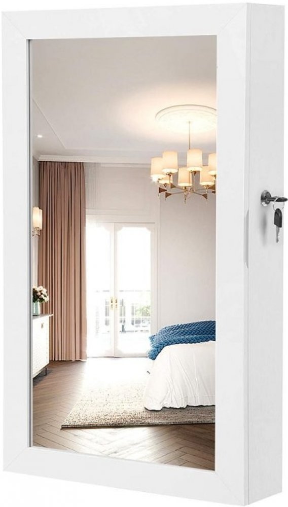Bílá barva - Rozměry: 37 x 10,5 x 67 cm (Šířka x Hloubka x Výška) - Zrcadlo: 29 x 59 cm (Šířka x Výška) - Materiál: MDF + samet + skleněná deska