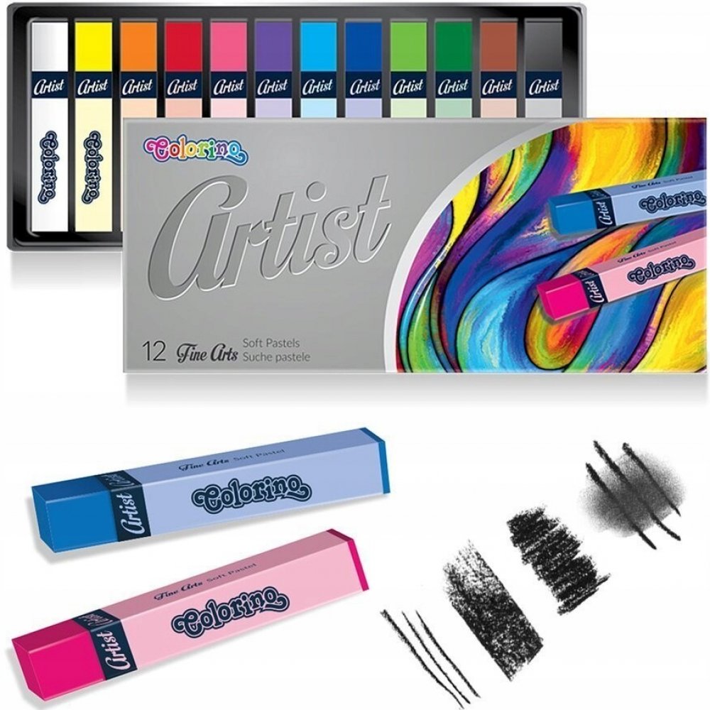 Suché, prašné pastely s vysoce sytým pigmentem. Jsou vhodné pro začínající umělce i nadšené výtvarníky a studenty. Prašné pastely Colorino mají vynikající krycí schopnosti a velmi intenzivní barvy. Snadno se s nimi stínuje. Hranatý čtvercový tvar umožňuje kreslit tenké, přesné linky a také dovoluje překrýt velké plochy papíru použitím širší boční strany pastelu. Doporučujeme hotový výkres přestřík...