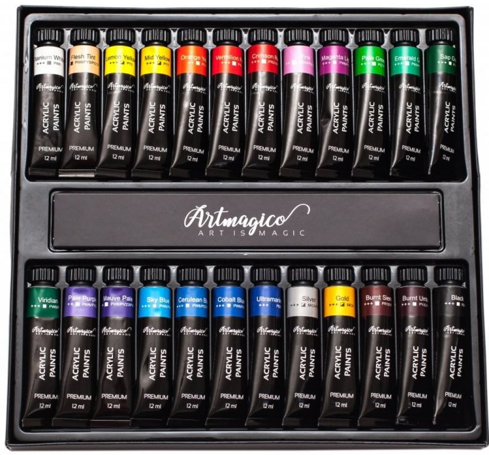 Objevte svět neomezených možností s akrylovými barvami Artmagico. Tato exkluzivní sada 24 barev v praktických tubičkách po 12 ml je perfektním společníkem pro každého umělce, ať už jste profesionál nebo nadšený začátečník. Nechte svou kreativitu rozkvést s těmito vysoce pigmentovanými barvami, které vám umožní vytvářet dechberoucí umělecká díla.