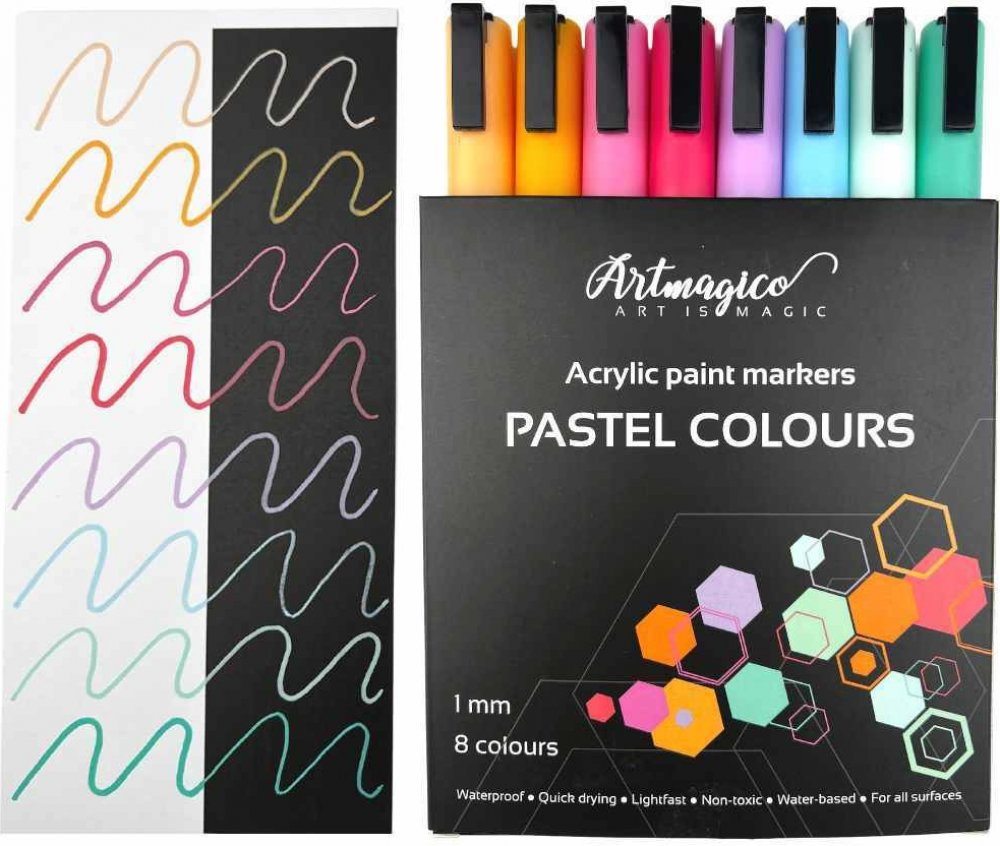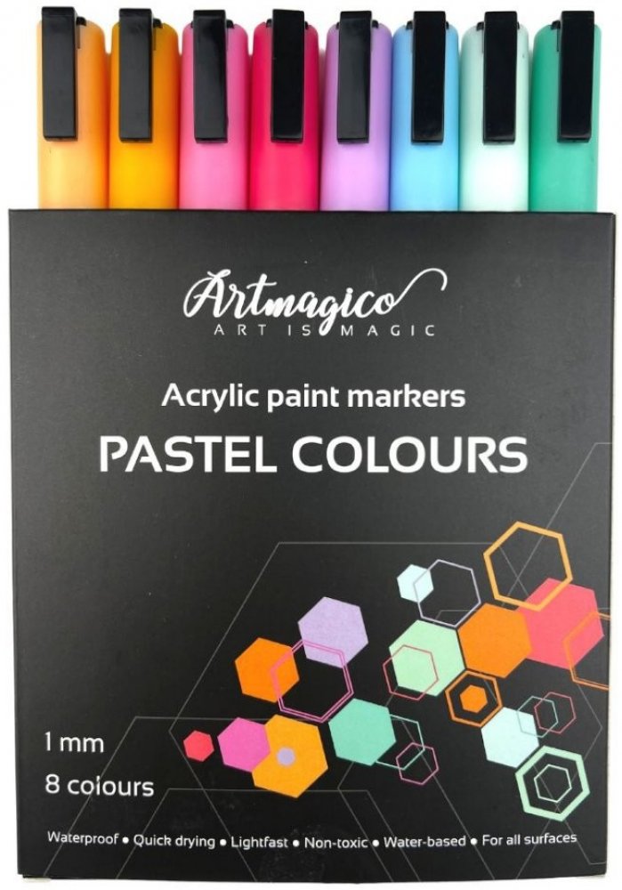 Akrylové popisovače značky Artmagico SMART s jemným hrotem, jsou ideální volbou pro všechny typy malířů. Jejich syté pastelové barvy překvapí svými krycími vlastnostmi, které vynikají jak na světlém, tak tmavém povrchu.
