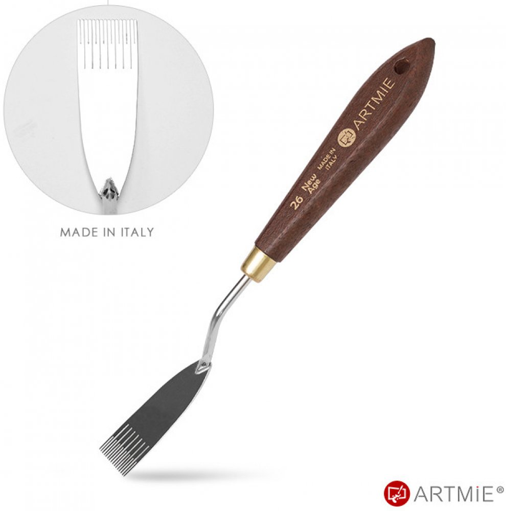 ARTMIE umělecké špachtle jsou novou kvalitní řadou paletových nožů nejrůznějších forem vyrobených v Itálii. Široká škála nových tvarů umožňuje různá použití, od tenkých flexibilních čepelí pro malé, dobře definované detaily, až po širší čepele se zaoblenými hranami a zvláštními tvary, kterými se jednoduše nanáší barva v různých vrstvách a strukturách. Paletový nůž má če...