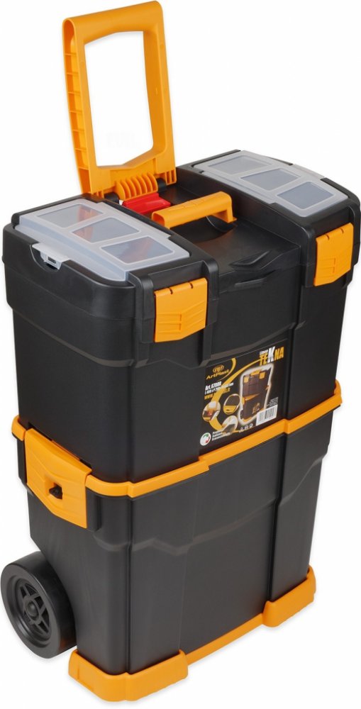 Tento dvoupatrový pojízdný box se ihned po zakoupení jistě stane skvělým společníkem na všech vašich cestách, ať už jste profesionální řemeslník nebo domácí kutil. Uložíte do něj ruční, elektrické i Aku nářadí. Lze ho zabezpečit visacím zámkem (není součástí balení). Jistě oceníte i velká kola a sklopnou rukojeť pro pohodlný převoz z místa na místo.