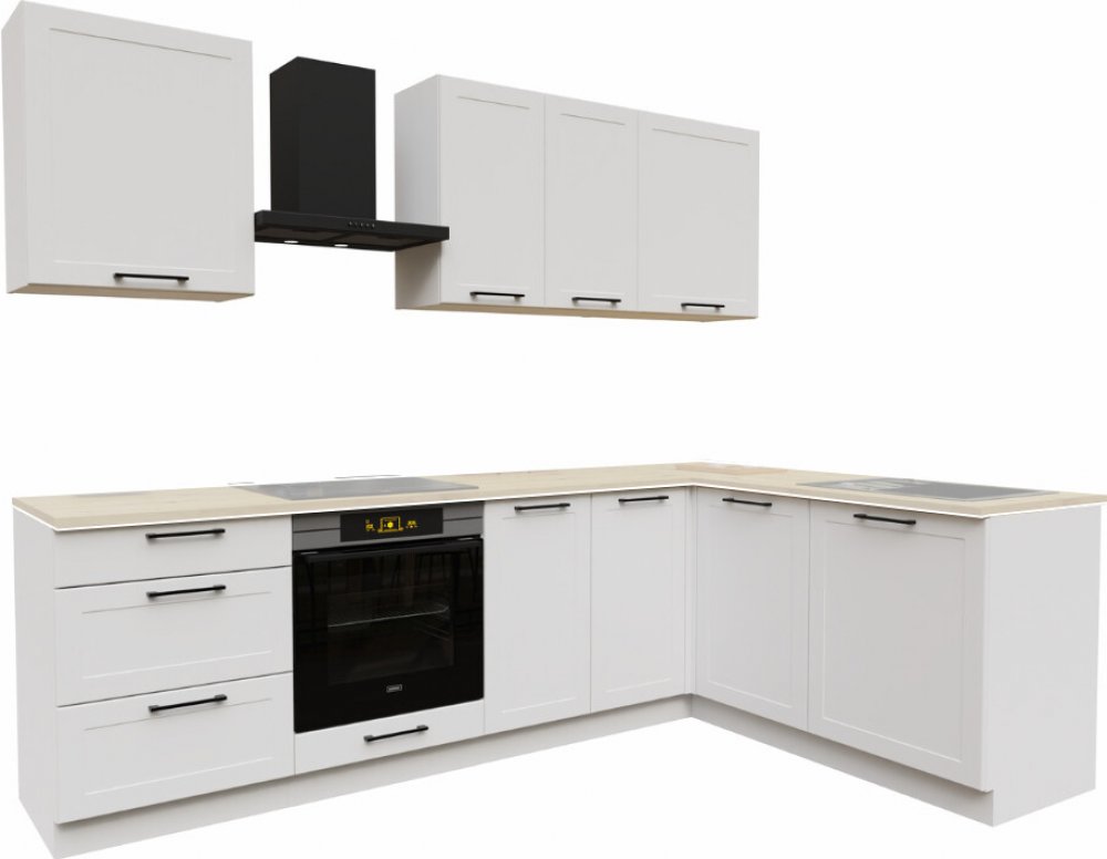 Moderní rohová kuchyňská linka ADELE v elegantním bílém provedení s jemnými frézovanými dvířky přinese do vaší kuchyně světlost, styl a nadčasový vzhled. Čisté linie a matný povrch dodávají prostoru luxusní nádech , zatímco černé úchytky vytvářejí zajímavý kontrast. Praktické rohové řešení šetří místo a nabízí úložný prostor. Díky univerzálnímu designu se tato linka hodí do malých i velkých kuchyní, a to v moderních, venkovských či skandinávských interiérech. Kvalitní zpracování a odolné materiály zajistí dlouhou životnost a snadnou údržbu. Pracovní deska není součástí.