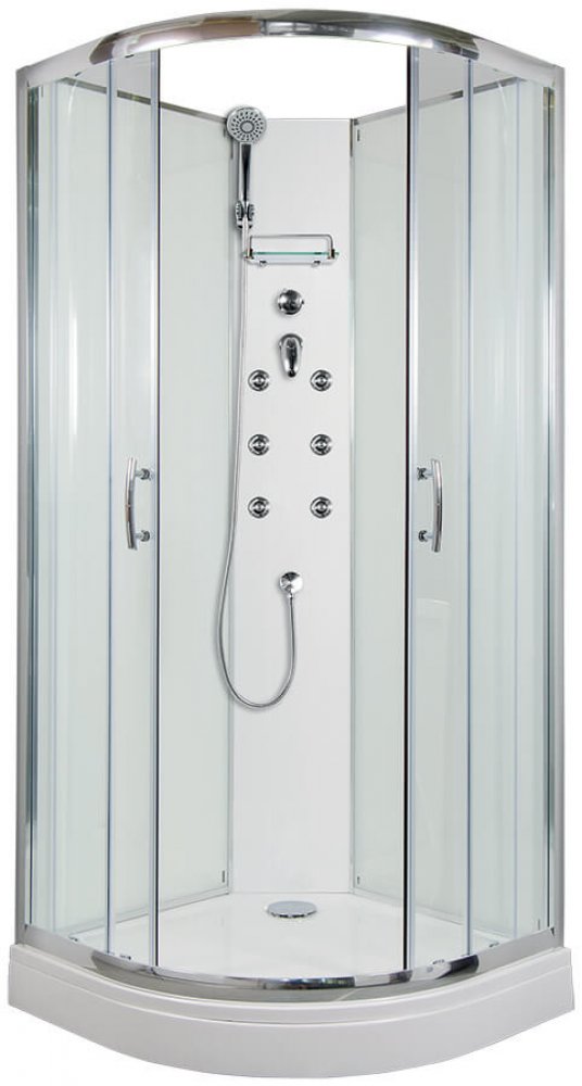 Masážní sprchový box ARTTEC BRILIANT MODEL 4 clear, vlastní výroby, s posuvnými dveřmi čtvrtkruhový se vyznačuje vysokou kvalitou a jednoduchým designem. Nabízí vše, co potřebujete k pohodlnému každodennímu sprchování: baterii s ruční sprchou a držákem, poličku a vaničku z litého mramoru. Pro větší relaxaci přináší i 6ks masážních trysek.