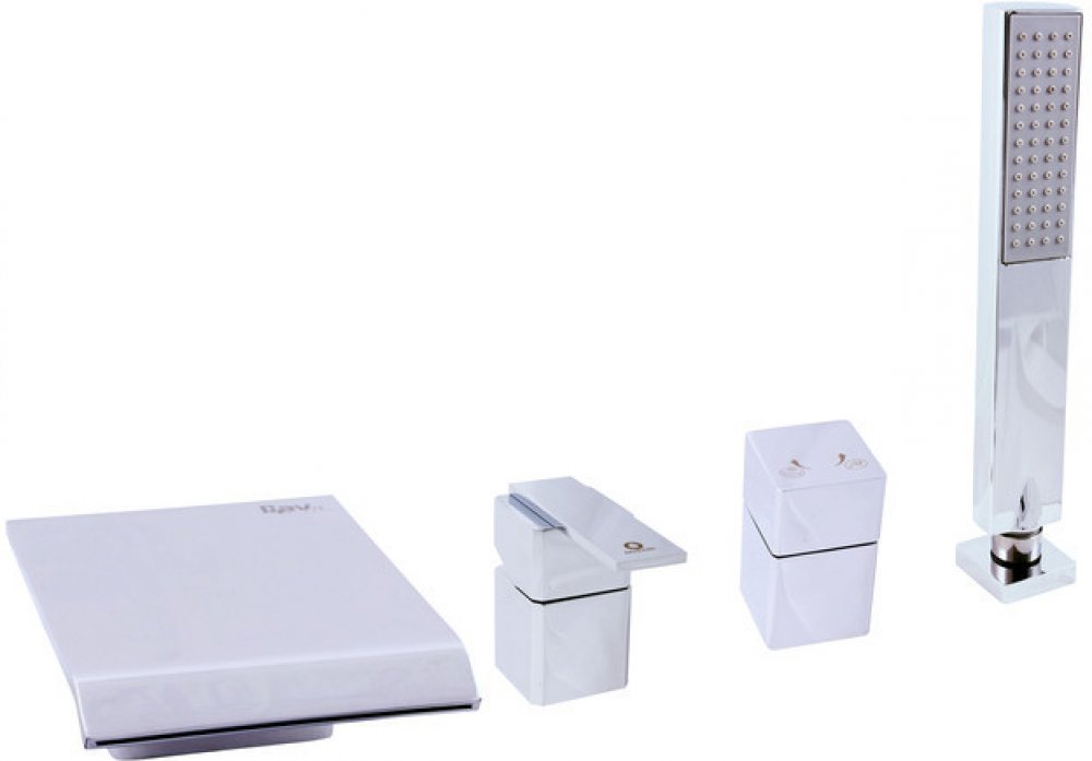 Vodovodní baterie vanová stojánková čtyřotvorová s keramickým přepínačem, samonavíjecí 2m hadicí a sprchou.