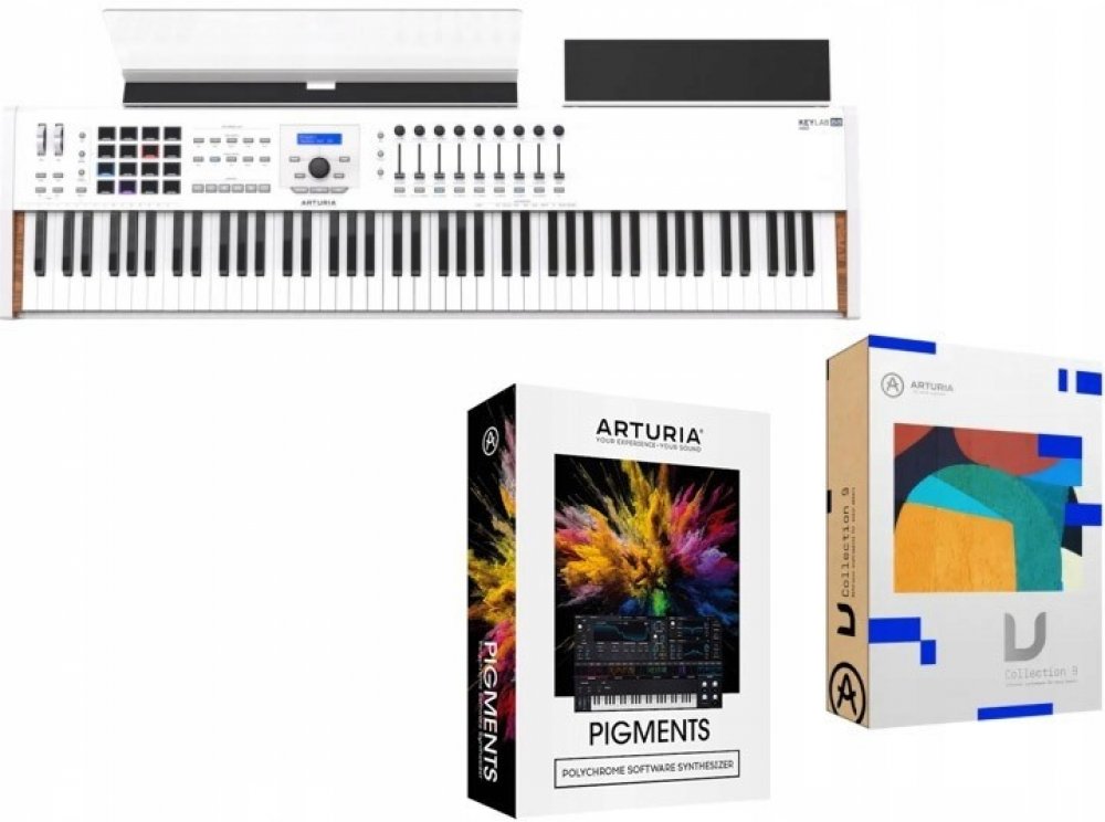 USB/MIDI keyboard !!!Zvýhodněný set sestávající z Arturia KeyLab 88 MKII, masivního dřevěného stojanu a softwaru Arturia V Collection 6!!! Arturia KeyLab MKII nabízí vše, co budete potřebovat pro krocení nástrojů a efektů ve svém DAW, a také CV a MIDI konektivitu, takže s ním ovládnete i eurorack nebo vintage syntezátory. S Keylab MKII budete mít veškeré aspekty vaší produkce pevně v ruce, a navíc...
