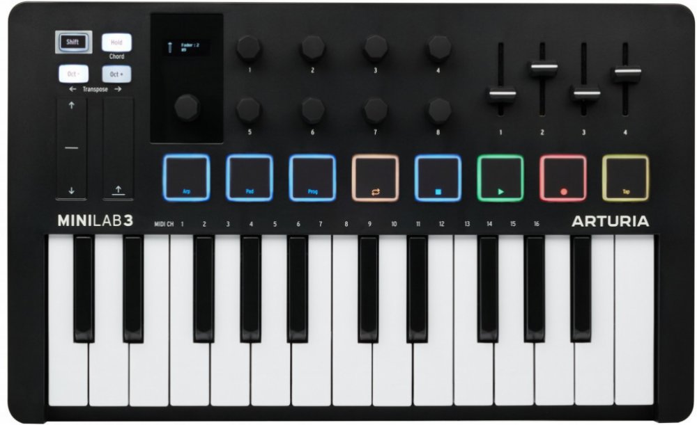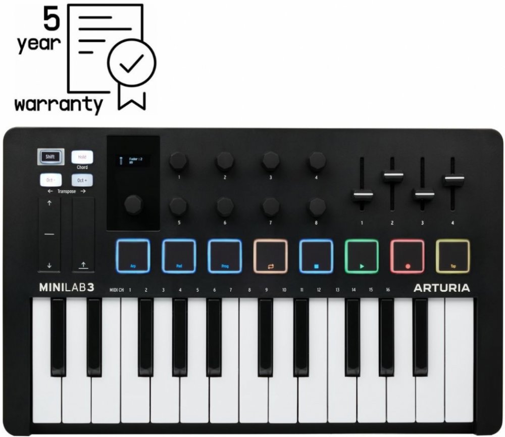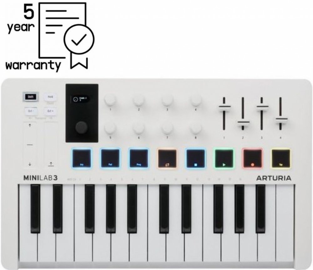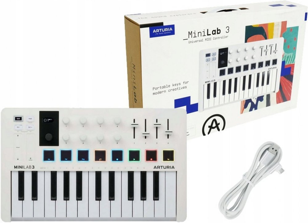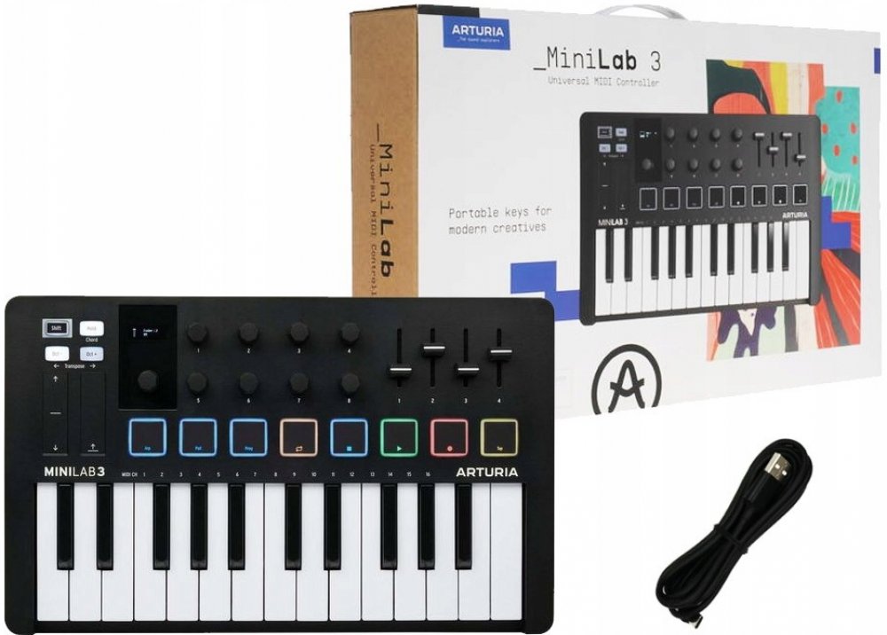 USB/MIDI keyboard ARTURIA MiniLab 3 jsou intuitivní a cenově dostupné plug and play USB mini klávesy určené jak začátečníkům tak profesionálům. Díky jednoduché instalaci se můžete maximálně soustředit na práci. Dynamická klaviatura a nastavitelné pady vytváří v kombinaci s luxusním balíčkem dodávaného softwaru prostor pro vaši kreativitu. Bonusem už jsou pak pouze kompaktní rozměry a robustní konstrukce, která předurčuje k cestování.