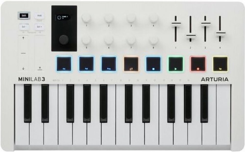 Najděte svůj vlastní flow a vychutnejte si tvorbu hudby pomocí plug-and-play MIDI kontroléru, který to všechno zvládne. MiniLab 3 nabízí jednoduché ovládání, funkční klávesy a plně integrovaný softwarový balík typu vše v jednom, který je připraven k tvořivosti hned po vybalení. Jednoduchý klávesový kontroler, který se přizpůsobí vašim potřebám, vašemu stylu a vašemu pracovnímu postupu, takže můžete dělat hudbu přesně tak, jak se vám líbí. Připojte se, objevte nové zvuky, vychutnejte si prvotřídní klávesy citlivé na rychlost stlačení a ovládněte svou hudbu jako nikdy předtím.
