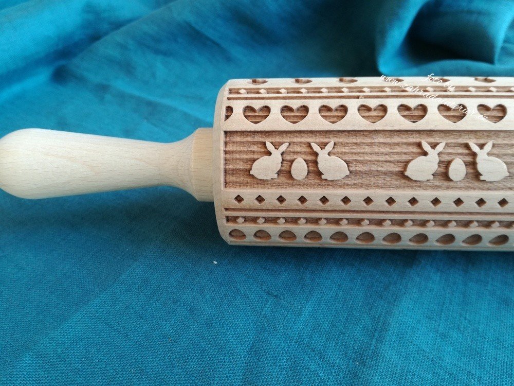 ArtWoodenCorner Dřevěný váleček se vzorem 42 cm Zajíčci