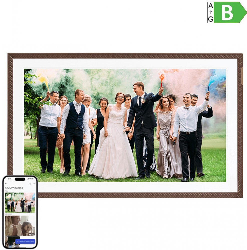 Díky funkci automatického vypnutí a časovače můžete nastavit, kdy se má snímek spustit a vypnout - například ráno a večer. Minimalistický rámeček v tmavě hnědé barvě se hodí do každého interiéru.