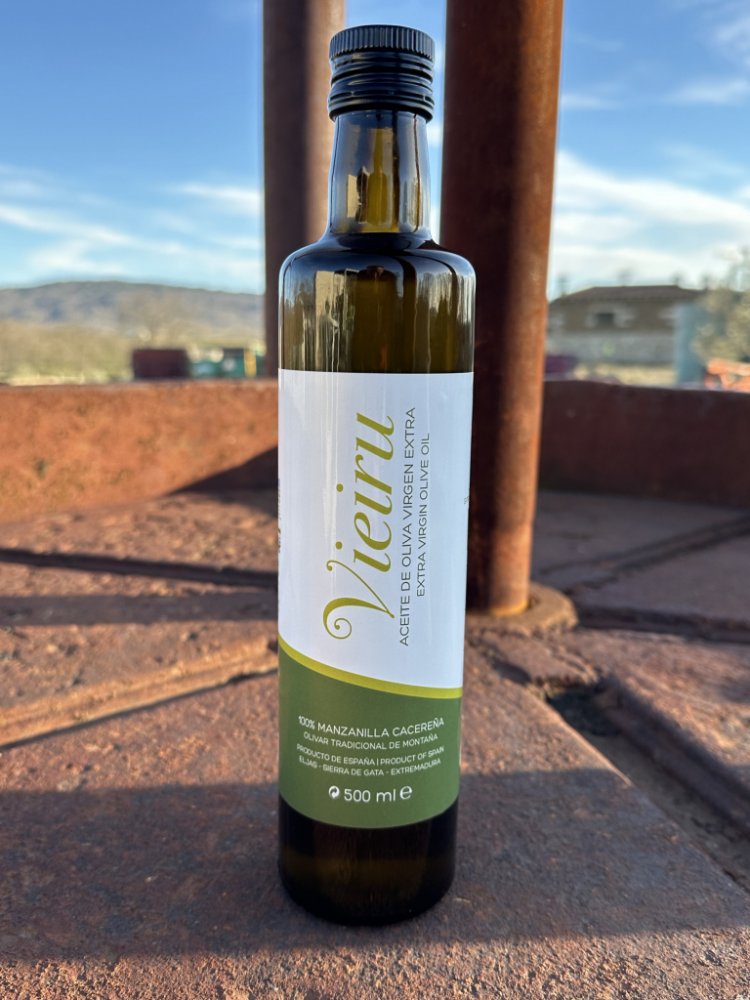Objevte dokonalost a autentickost v každé kapce našeho Extra panenského olivového oleje Vieiru 500 ml. Poznejte tradici a kvalitu, kterou může nabídnout pouze Sierra de Gata, Extremadura.