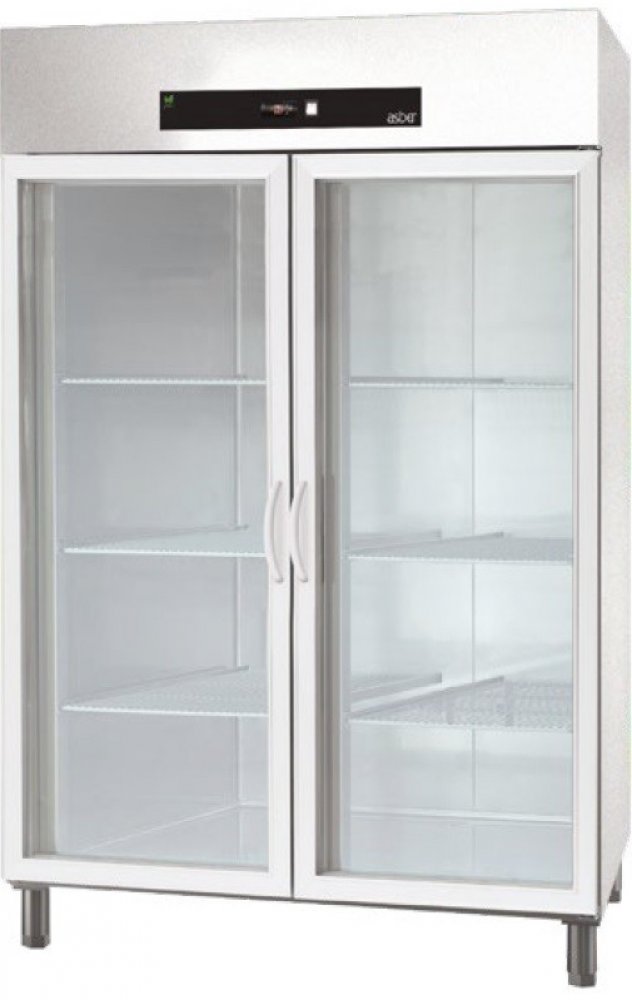 • Vnější část z pozinkované oceli s estetickou hliníkově-cínovou povrchovou úpravou, která zajišťuje vyšší odolnost proti korozi a mechanickému poškození než běžně lakované skříně.• Polyuretanová izolace stěn vstřikovaná pod vysokým tlakem, tloušťka 50 mm, vysoká hustota 40 kg/m³, bez obsahu CFC.• Dvojitě prosklené dveře izolované nízkoteplotním plynem pro lepší tepelnou izolaci.• Ergonomická niklovaná madla.• Křídlové dveře s automatickým dovíráním pod 90° a maximálním úhlem otevření 120°.• Dveře vybaveny zámkem.• Intuitivní digitální regulátor umožňuje rychlé a snadné nastavení teploty.• Větrací otvory v předním panelu zlepšují estetiku a optimalizují provoz chladicího systému.• Kontrolka zapnutí/vypnutí.• Bezúdržbový kondenzátor s konstrukcí zabraňující usazování prachu a nečistot, šetří energii.• Výparník s nuceným oběhem vzduchu a antikorozní povrchovou úpravou.• Inteligentní systém cirkulace vzduchu rovnoměrně rozvádí teplotu díky inovativní konstrukci.• Dveřní spínač vypíná ventilátor při otevření dveří, snižuje ztráty chladu a šetří energii.• Automatické odpařování kondenzátu pomocí horkého plynu z kompresoru, bez nutnosti topných prvků, což snižuje spotřebu energie a zkracuje dobu odmrazování o polovinu.• Nerezové nožky s nastavitelnou výškou od 125 do 200 mm pro snadné čištění pod zařízením. Volitelně kolečka a nožní pedál pro otevírání dveří.• Police lze montovat a nastavovat bez použití dalších lišt; epoxidové police jsou přizpůsobené pro různé typy obalů, maximální zatížení 30 kg.• Magnetická demontovatelná těsnící lišta dveří pro maximální hygienu a izolaci.• Dno z lisovaného plechu s odtokovým otvorem a zaoblenými vnitřními hranami pro snadnou údržbu a hygienu.• Police nastavitelné na 18 úrovních (u modelů s velkými dveřmi rozteč mezi policemi 70 mm) pro zvýšení kapacity.• Přizpůsobeno pro gastronomické nádoby GN 2/1.• Výbava: 3 epoxidové police GN 2/1 na každé velké dveře nebo 1 epoxidová police GN 2/1 na každé malé dveře.• Chladivo: R290 Hydrocarbon (HC).• Provozní teplota: od -2 °C do +8 °C, klimatická třída IV.• Napájení: 230 V, 1+N, 50 Hz.• Čistý objem: 874 l.Volitelné příslušenství:• LED osvětlení• Systém otevírání dveří• Sada koleček