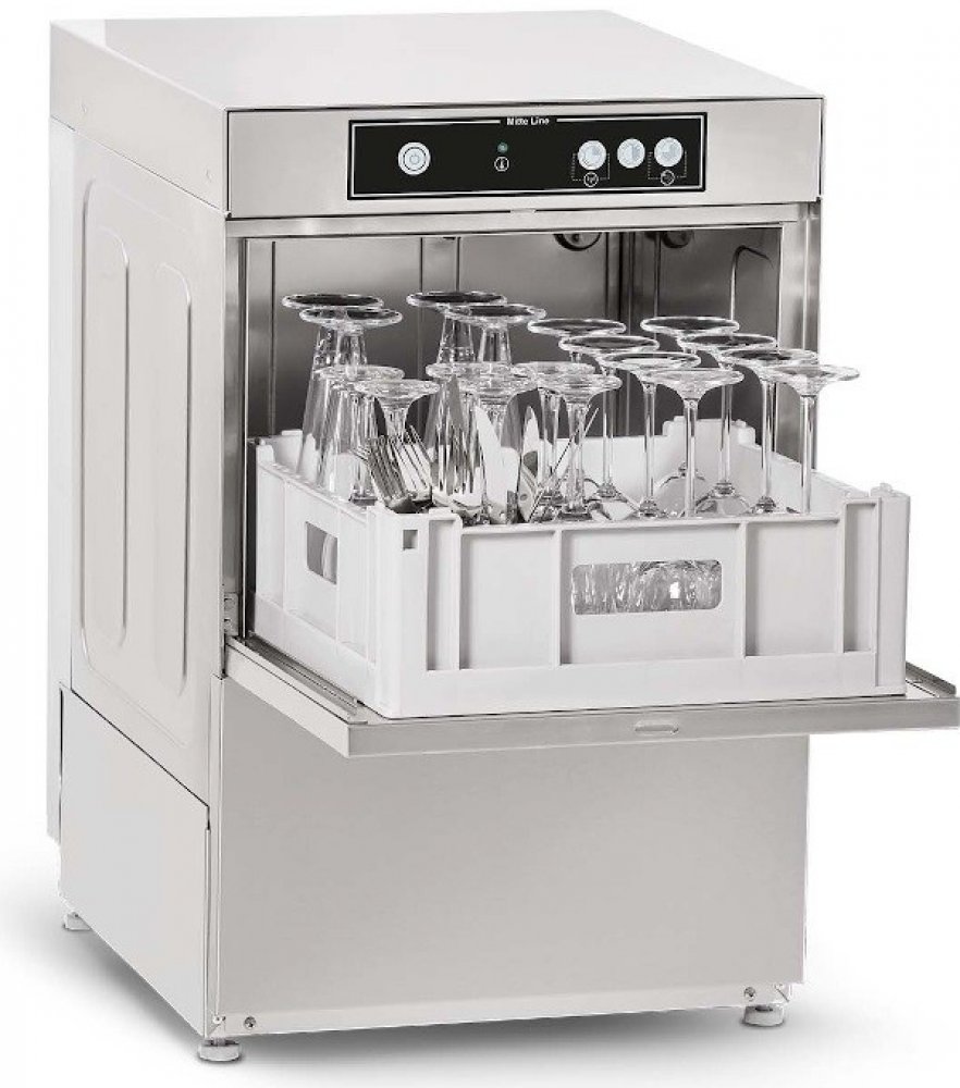 Digitální ovládání3 mycí cykly: 90 / 120 / 180 sekundObjem vany: 15 l / Výkon topného tělesa: 2,0 kWObjem bojleru: 5 l / Výkon topného tělesa: 2,8 kWVýkon mycího čerpadla: 0,3 kWSpotřeba vody na oplach: 2,5 l/oplachHorní a dolní mycí a oplachová ramena (nerezová ramena dostupná jako volitelné příslušenství)Bezpečnostní termostatPozvolný startNezávislý cyklus oplachu studenou vodouVestavěný dávkovač lešticího prostředkuZpětný ventil proti zpětnému toku vodyFunkce Thermo-stopTeploty řízené termostatem:Mytí 60 °C a oplach 85 °CNapájení: 230 VVybavení: 2 koše 400 x 400 mm a 1 zásobník na příbory CU