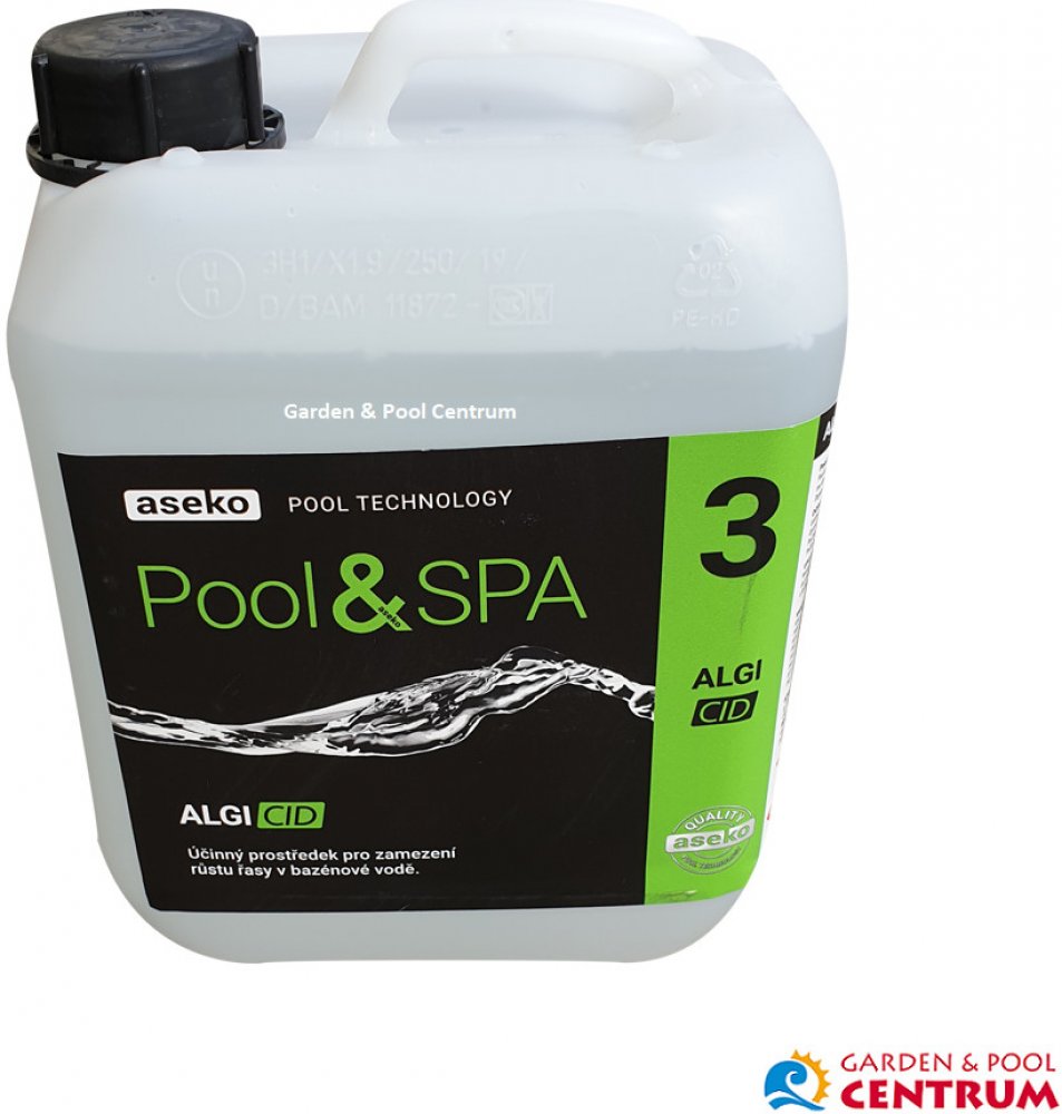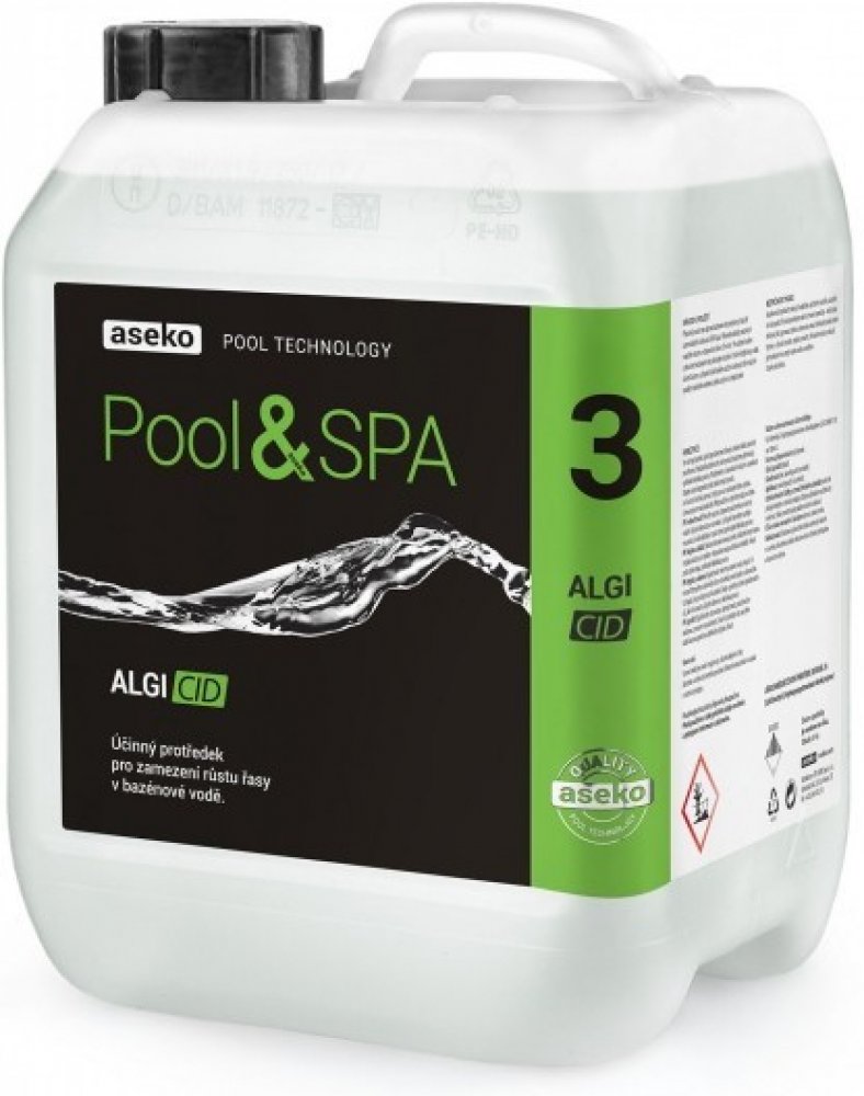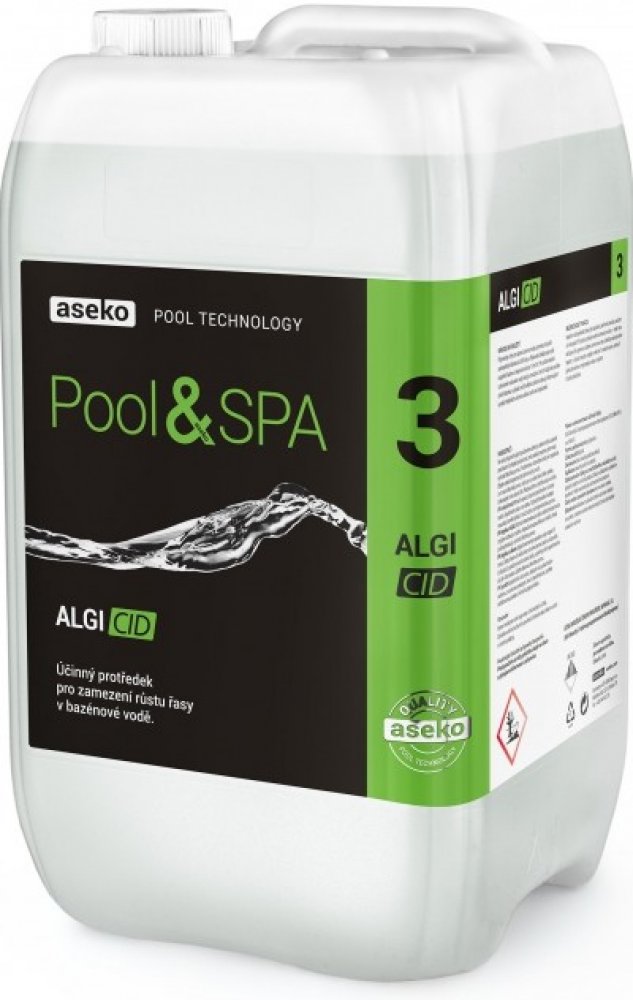 ALGICID je ideální pro použití v bazénech a lázních. Jeho silný a dlouhotrvající