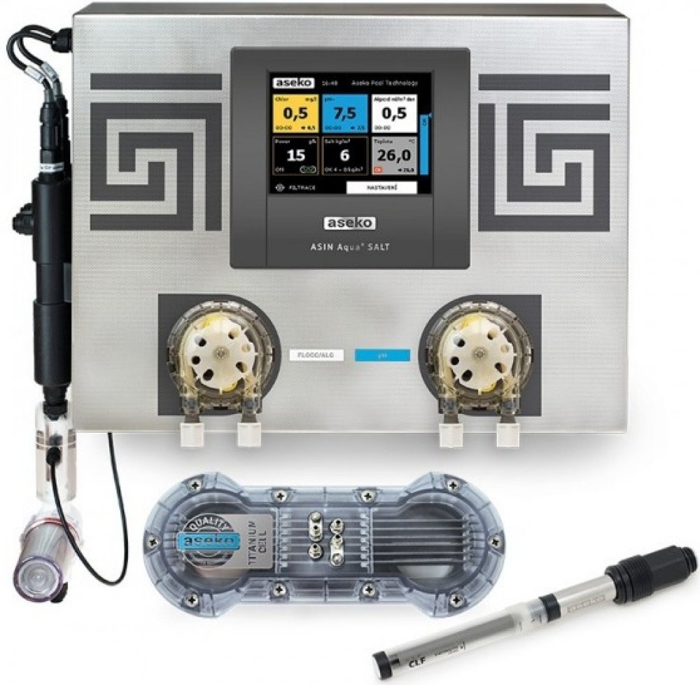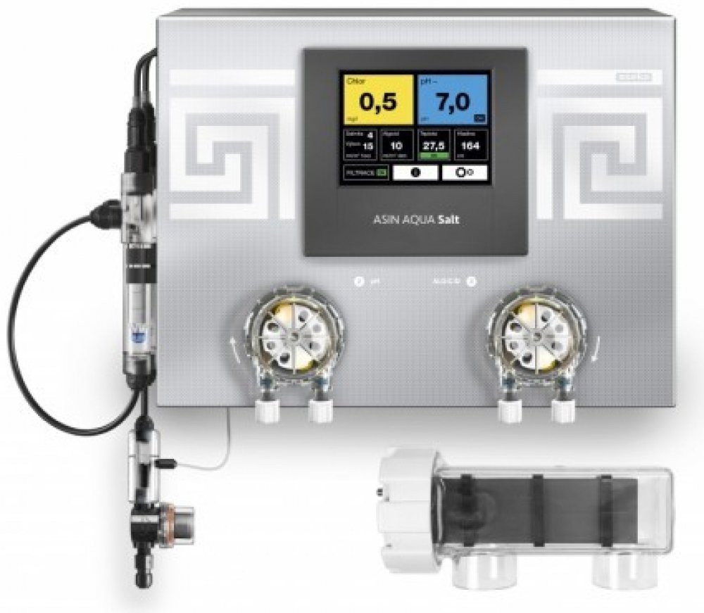 Nejmodernější elektrolyzér pro dezinfekci bazénové vody. Exkluzivní provedení ve kterém se podařilo sloučit řízení a dávkování do dokonale zpracovaného nerezového celku s integrovaným měřením salinity (aktuální obsah soli v bazénové vodě) a dávkováním algicidu pro komplexní udržení kvality vody.