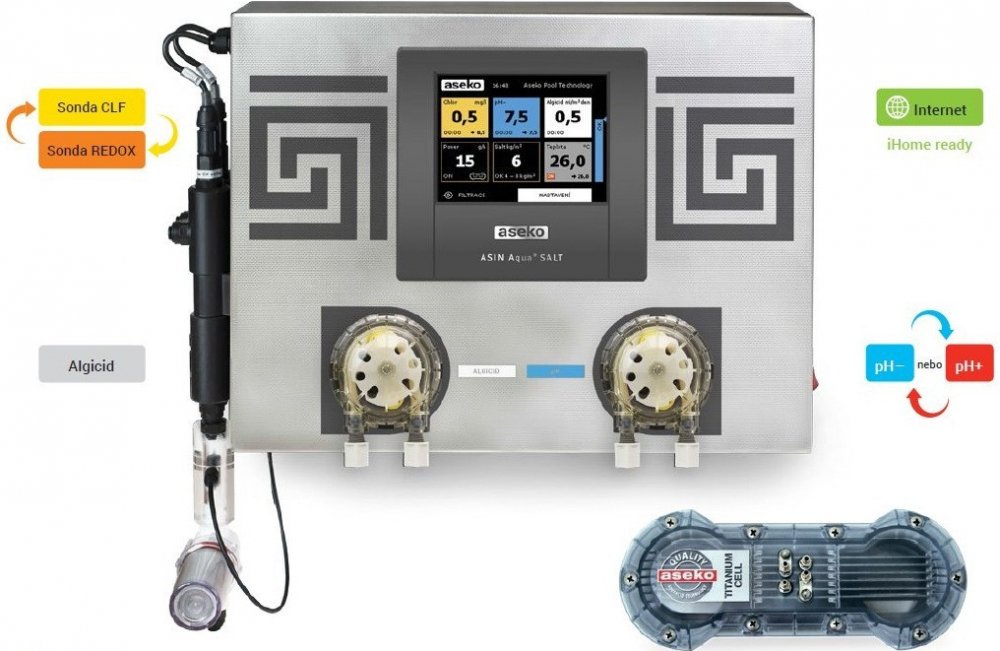 Optimální velikost bazénu 60 m3 maximální 90 m3(pro větší, či extrémně zatížené bazény, lze použít více automatů ASIN Salt 13209 a tím zvýšit produkci chloru).ASIN Aqua SALT REDOX