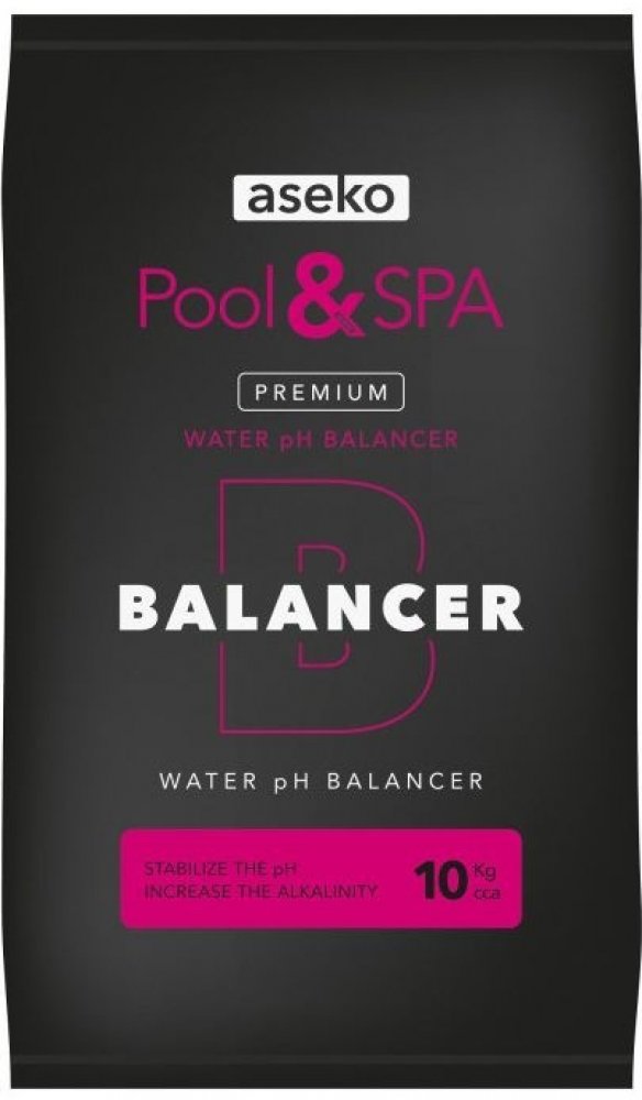 Aseko Balancer slouží k úpravě alkality bazénové vody. Napomáhá tím ke snížení spotřeby přípravků pro úpravu pH a zvyšuje účinnost dezinfekčních přípravků.. Zakupte Úpravy alkality - Aseko Balancer (premium) 10 kg Alkalita z kategorie Dům a zahrada | Bazény a doplňky | Bazénová chemie od výrobce Aseko za cenu 1240 Kč.