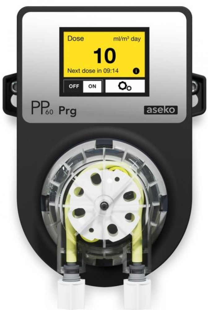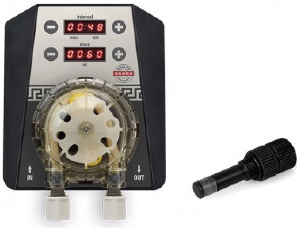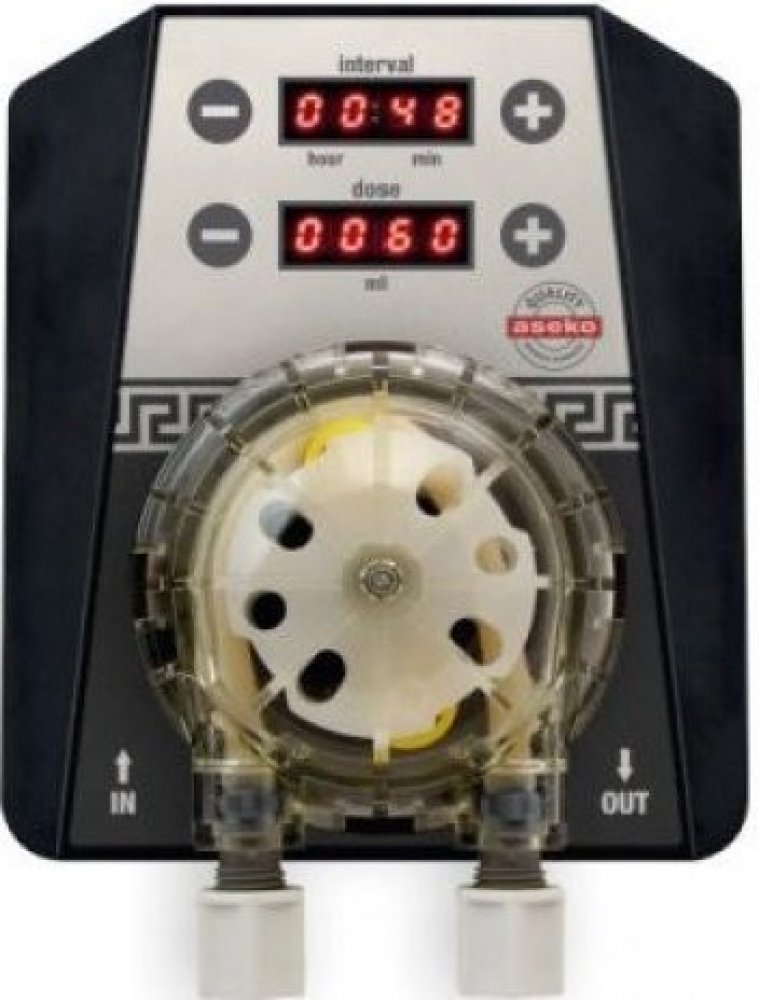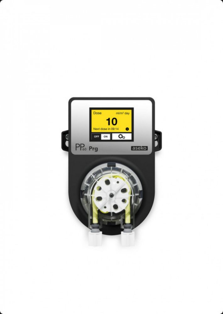 Technická specifikace Hodnota Napájení 230 V / 50 Hz (12V) Zdroj 4,5 VA Pojistka T500 mA Kategorie II Ochrana IP50 Provozní teplota +5 to +40°C Váha 530g Umístění Nástěnné Výkon 10 ml / min Maximální tlak vody 1 bar Rozměry 125 x 140 x 120 mm Ukázka nastavení a systému fungování +Vynikající pro dávkování flokulantu a další chemie v bazénech a vířivkách časově +Dlouhá životnost a stálý výkon díky kvalitní konstrukci +Ideální pro dezinfekci, flokulanty,chlor, ph +Jednoduché zapojení a synchronizace s oběhovým čerpadlem -Vyžaduje pečlivou instalaci v suchém a bezprašném prostředí „Časové dávkovací čerpadlo PP60 PRG Aseko je klíčem k udržení perfektního stavu vody ve vašem bazénu, vířivce nebo průmyslovém provozu. Jeho přesnost, efektivita a snadná údržba přinášejí pokojnou mysl pro každého majitele.“ tým Poolservis Dávkovací čerpadlo chemie pro bazény a vířivky - PP60 PRG Aseko Pokud hledáte spolehlivé řešení pro časové dávkování chemie ve vašem bazénu nebo vířivce, dávkovací čerpadlo PP60 Aseko nabízí přesně to, co potřebujete. S výkonem 10 ml/min a schopností pracovat při tlaku až 1 bar, toto vysoce výkonné peristaltické čerpadlo je ideální pro manipulaci s agresivními chemickými látkami, které jsou nezbytné pro udržení čisté a bezpečné vody. Jeho výjimečná konstrukce a design zajišťují nejen dlouhou životnost, ale i stálý výkon, což z něj dělá spolehlivého partnera pro dávkování dezinfekčních prostředků, flokulantů a kapalin na úpravu pH v bazénech až do velikosti 250 m3. Navíc je čerpadlo navrženo pro snadnou instalaci a synchronizaci s oběhovým čerpadlem, což zaručuje, že dávkování probíhá pouze při jeho běhu, čímž se eliminuje riziko chybného dávkování. Instalace čerpadla PP60 PRG vyžaduje pečlivý výběr místa v suchém a bezprašném prostředí s teplotou mezi +5 a +40 °C, aby bylo zajištěno jeho optimální fungování a minimalizováno riziko poškození. Díky průvodním otvorům na čelním víku čerpadla a dodaným šroubům je montáž na stěnu rychlá a bezproblémová. Propojení nástřikového ventilu s čerpadlem a dávkovaným činidlem je zásadním krokem pro efektivní fungování systému. Dodržení správného postupu při instalaci zajišťuje těsnost spojů a optimální průtok chemikálií, což je klíčové pro udržení kvality vody ve vašem bazénu nebo vířivce na nejvyšší možné úrovni. Dávkovací čerpadlo PP60 PRG Aseko je tak ideální volbou pro každého, kdo vyžaduje spolehlivé, efektivní a jednoduše ovladatelné řešení pro udržení čistoty a bezpečnosti vody v bazénech a vířivkách. Jeho kvalita, výkon a snadná údržba jsou zárukou spokojenosti a dlouhodobého bezproblémového používání. Pro napojení do potrubí je potřeba dokoupit ještě 3x t-kus a 3x puk 1/4", aby bylo kam našroubovat okruh pro sondy a vstřikovací kus.