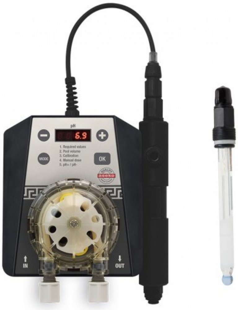 PP60 pH automaticky reguluje kyselost (hodnotu pH) bazénové vody pH, měřenou standardní pH-elektrodou.Nastavená hodnota pH je zobrazena na červeném LED-displeji, který současně slouží k nastavení všech potřebných parametrů jednoduchým postupem, podle menu...