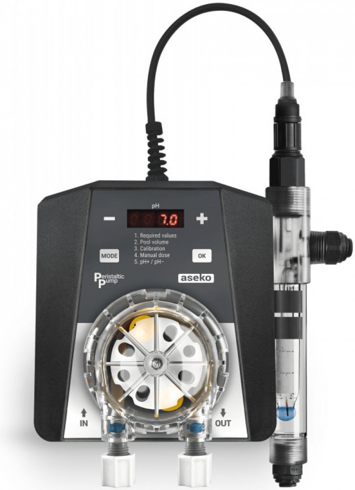 PP60 pH automaticky reguluje kyselost (hodnotu pH) bazénové vody pH, měřenou standardní pH-elektrodou.